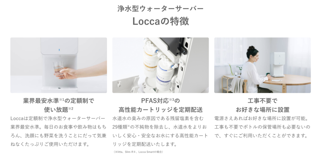 | 1位 | Locca | 2,580円~ | 浄水型 | 定額水使い放題 |