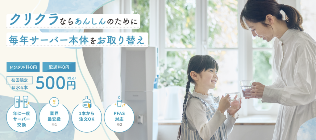 | 4位 | クリクラ | 約3,000円~ | RO水 | 安全性高 |