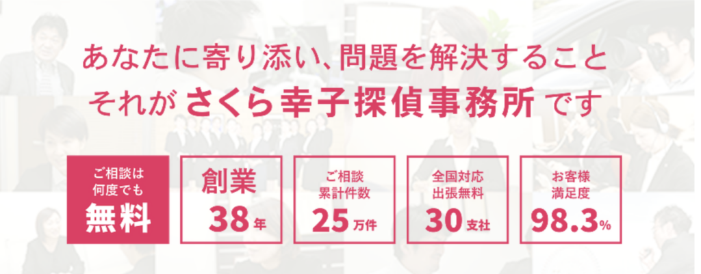 女性相談員が多数在籍する総合探偵社MRさくら幸子探偵事務所は、特に女性からの支持が高い傾向があります。