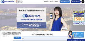 | World eSIM | 200+ | ○ | 日本語対応 | ○ | 上場企業運営・周遊旅行・ビジネス出張 |
